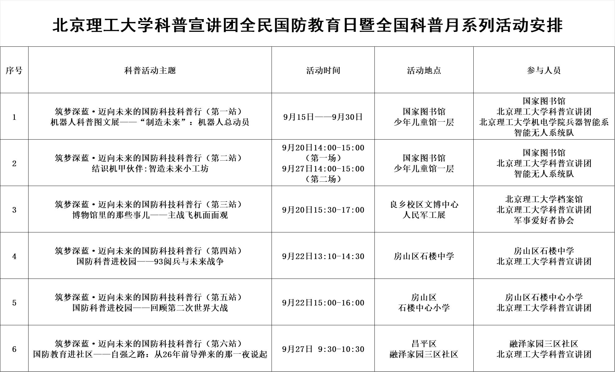 附表:太阳成集团科普宣讲团全民国防教育日暨全国科普月系列活动安排